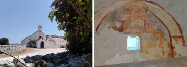Un’apparizione per me è stata la Madonna del Barsento, vicino ad Alberobello, eccellente angolo di Puglia. La strada scende e sale per zone boscose, il cartello marrone dei beni storici che si fatica a vedere, lo sterrato che sembra perdersi nel verde, la comparsa del bianco edificio incorniciato dal cielo azzurro. La custode gentilissima ci apre con le sue bimbette compiaciute nella parte di guida. “Ci sarà un battesimo nel pomeriggio“. E ci spiegano dell’antica nicchia che risale al primo Medioevo con l’affresco del Cristo Pantocrate – il punto omega dell’universo diceva Teilhard de Chardin – dei monaci che l’hanno abitata, dei concerti che a volte vi si tengono. Da Bari a Brindisi passava la via interna parallela a quella della costa, l’una era la via Traiana, questa era detta via barsentana. Davanti uno spiazzo circondato da muretti a secco da dove lo sguardo si posa sulla macchia mediterranea intorno, che degrada verso il mare, e più in là, al confine che rompe ogni confine.