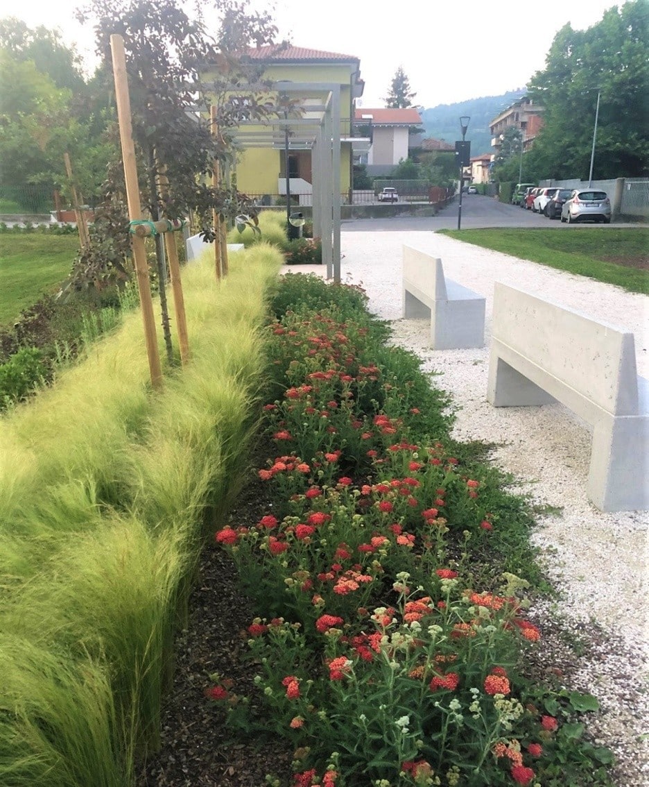 Il progetto dell’area verde prevede particolari criteri anti-alluvione per risolvere le problematiche di carattere idrogeologico e idraulico cui l’area è soggetta.