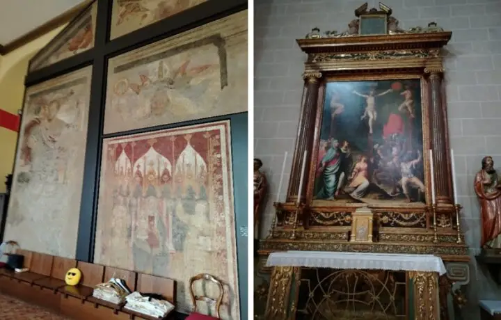 La Chiesa è ben conservata. C’è una Associazione che la tiene aperta e ne ha cura. Gli affreschi della facciata sono stati tolti e collocati nella sacrestia per preservarli dalle intemperie. Per vederli e fotografarli, trovando la porta aperta, mi sono intrufolato. Il parroco che in chiesa si trovava mi ha subito seguito, temendo qualche malintenzionato, “visti i tempi che corrono”. Fatte le debite scuse ho però approfittato per qualche informazione. Sui parroci che l’hanno preceduto, per esempio, spina dorsale delle comunità che si sono succedute, a cominciare dal primo nominato come Filippo “primicerio” di Lallio. Lallio fu in un certo momento considerata “parrocchia rurale autonoma”, con un proprio prete responsabile e non più dipendente dalla Chiesa di Sant’Alessandro di Bergamo. L’arciprete Caro Carlo Ambrosio si trovò nel 1659 alla visita pastorale del Vescovo Gregorio Barbarigo, il promotore del Seminario di Bergamo, che lo sollecitò ad erigere una nuova chiesa, che fu fatta più tardi, stante le possibilità economiche della parrocchia. L’arciprete Girolamo Gambarini fu poeta considerato e in relazione con illustri letterati come Byron e Chateaubriand, ottenendo pure un riconoscimento dal Re di Francia. La nuova chiesa fu consacrata sotto la guida di don Zanchi Francesco nel 1740, ed è ancora visibile in una vecchia fotografia esposta in sacrestia prima del suo abbattimento. Col senno di poi non fu una bella idea. Più raccolta, armonica appariva quella, che dava le spalle a chi arrivava da Grumello. La strada che l’avvolgeva su entrambi i fianchi proseguiva per Treviolo o Sforzatica. Strada sterrata e non più sentiero era diventata agli inizi dell’Ottocento, compresi i ponti che scavalcavano le rogge, l’Oriolo che cominciava la sua opera di irrigazione ad Astino, e la Morletta che scendeva lungo via Moroni, staccandosi dalla Roggia Serio .