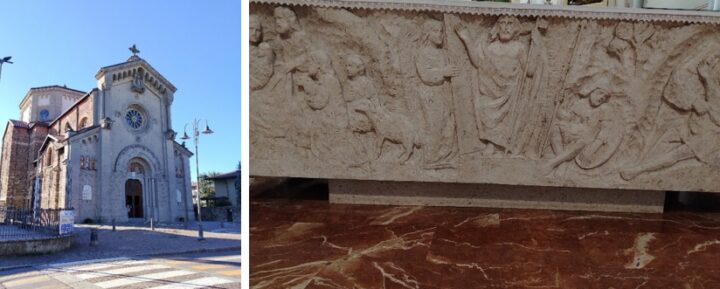 Questa chiesa, eccessiva oggi, è dedicata a San Bartolomeo e a Santo Stefano ed è stata disegnata dall’architetto Elia Fornoni. Non manca di pregevoli opere, a cominciare dalla Crocifissione del Terzi (1550) originariamente posta nella Chiesa di San Bernardino. Ha poi una Deposizione e Santi del Cifrondi (1710), ci sono gli stalli dei celebranti con le storie di Santo Stefano e San Bernardino dello scultore Giovan Battista Viola (1614). Sui diversi lati del nuovo altare in legno massello rivolto al popolo, sono scolpiti i principali eventi del Mistero cristiano.