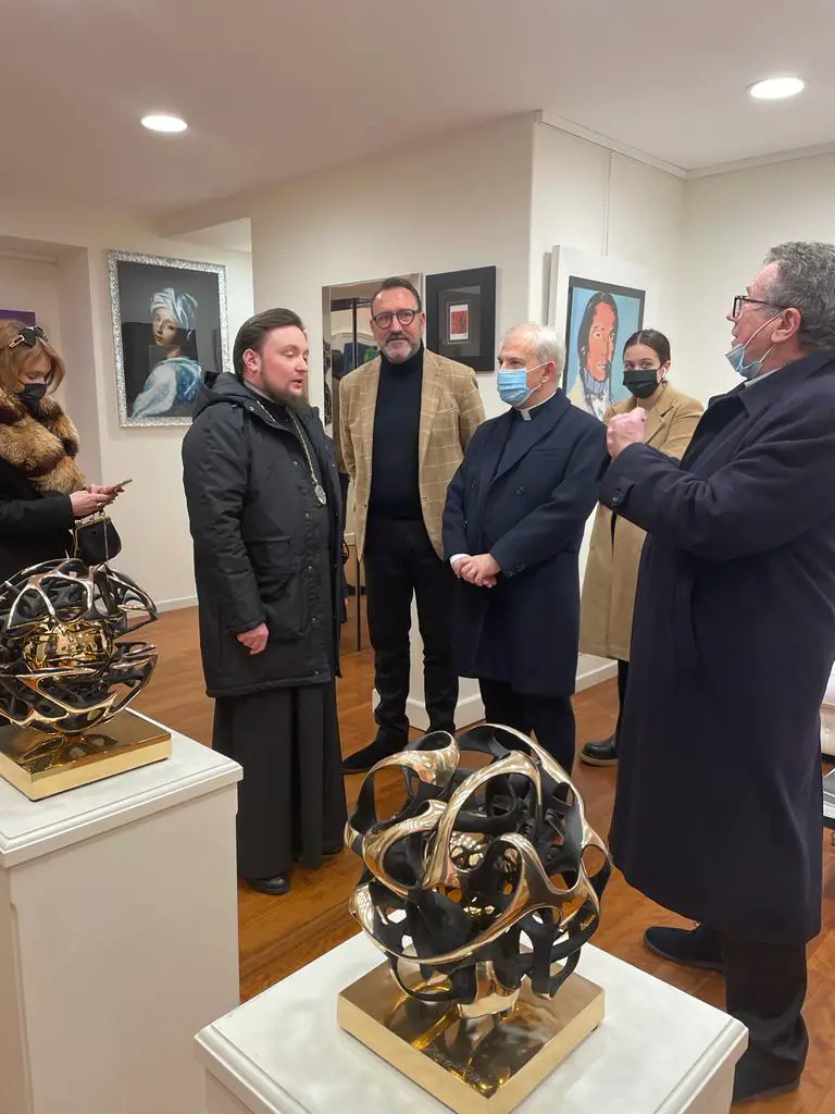 Presente all’incontro anche Mons. Giulio Dellavite, Segretario Generale della Diocesi di Bergamo, che ha cordialmente salutato il Vescovo Russo. Una chiacchierata immersi nell’arte internazionale proposta in galleria, un tè nel suggestivo salotto della art gallery e poi il Vescovo è ripartito per Milano, Torino e Bari dove è atteso in questi giorni dalla Chiesa Ortodossa in Italia per alcune importanti celebrazioni.